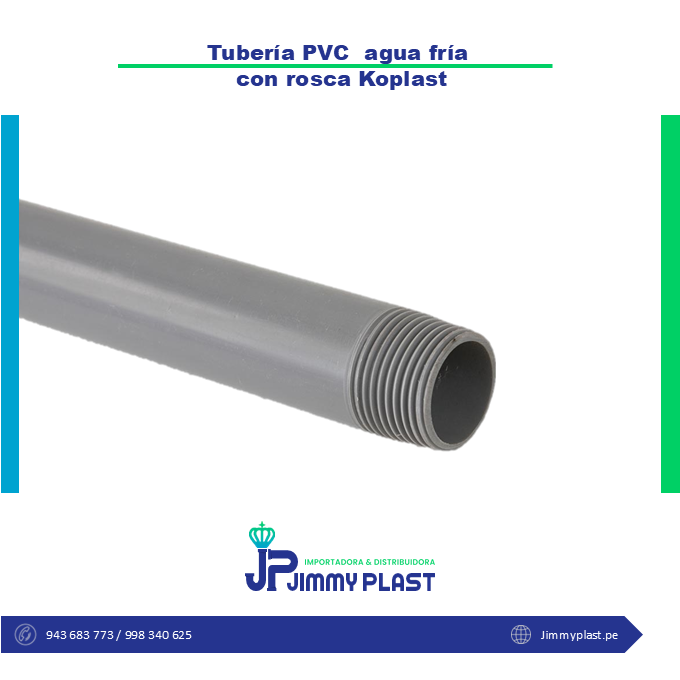 En JimmyPlast encontraremos las mejores marcas en tubería roscada (Koplast – Matusita- Pavco) que están diseñadas para transportar agua potable a grandes presiones y utilizada dentro de edificaciones de todo tipo, la tubería para presión roscable, por su gran resistencia mecánica, ha resuelto óptimamente, entre algunas de sus aplicaciones, los problemas de acometidas domiciliarias, en consideración a la facilidad de instalación y durabilidad.